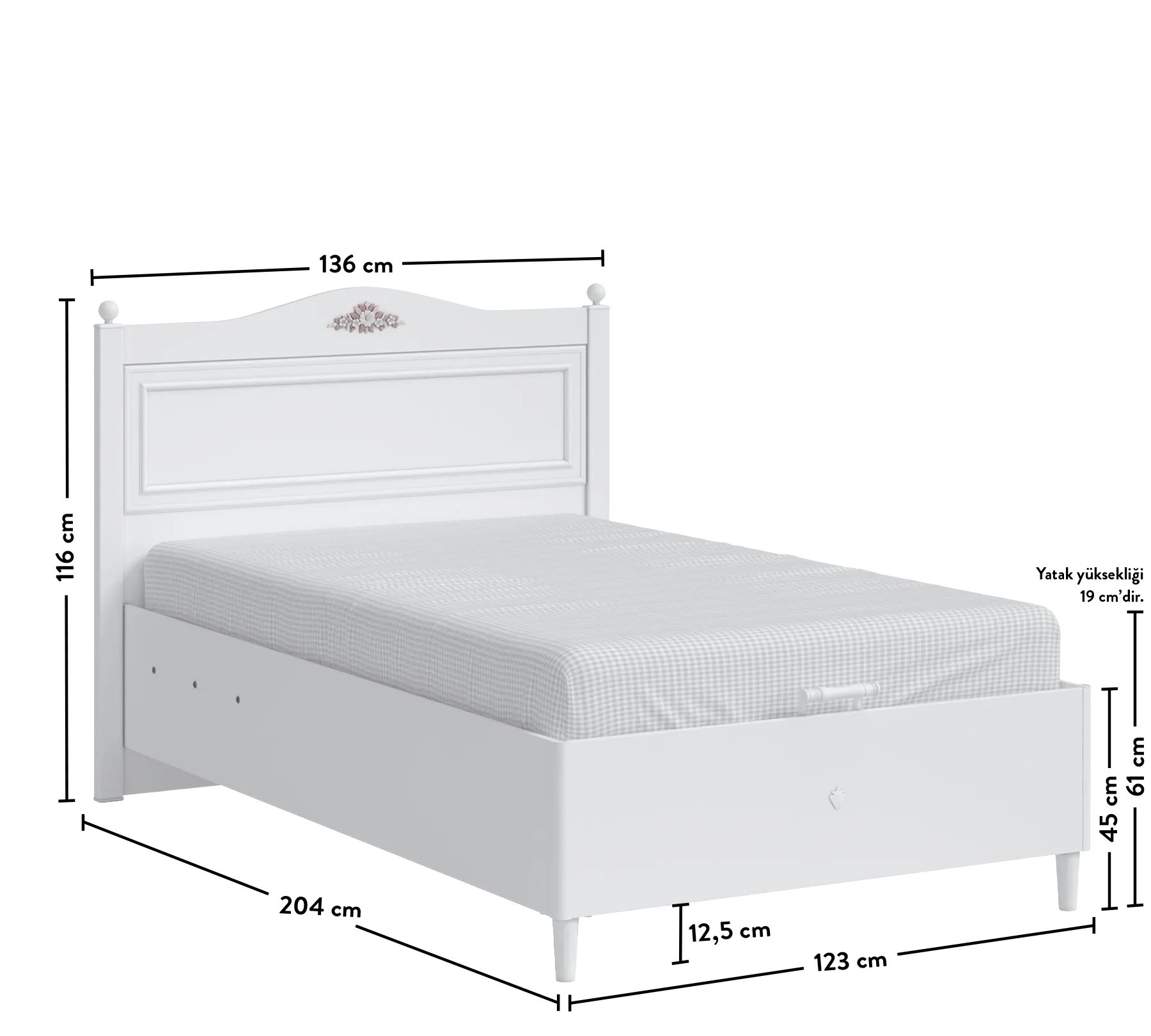 Rustic White სათავსოიანი საწოლი (120x200 სმ)